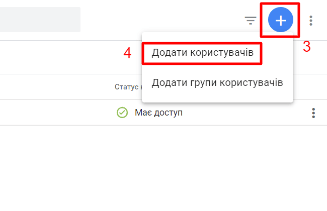 Натисніть "+" (3), потім "Додати користувачів" (4).