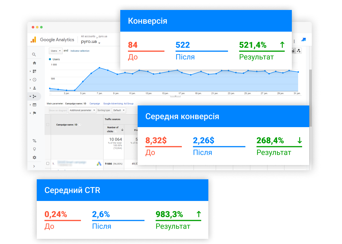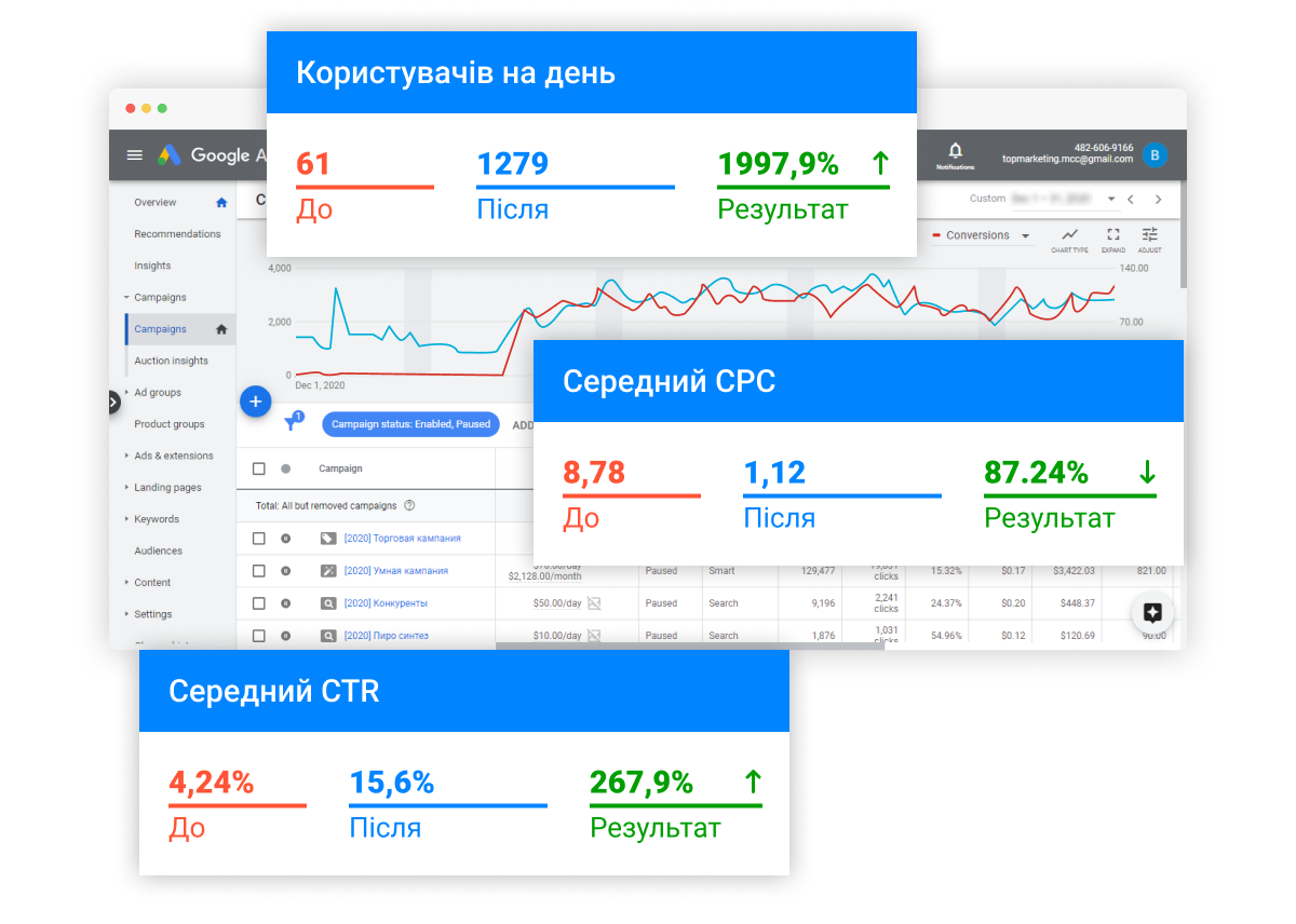 Багато хто вважає, що коли реклама добре налаштована вона сама по собі добре працювати завжди. На жаль, насправді ж налаштування реклами – це лише половина справи. Цей кейс був створений спеціально, щоб показати, як може змінитися ефективність реклами в процесі її грамотного ведення та оптимізації.